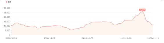 监测期内,共收集有关“直播带货”类负面信息334083条。每日负面信息量较为平稳,日均在12373条左右,其中11月11日舆情信息量最高。