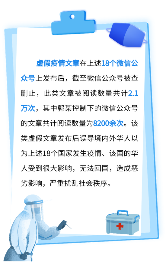 林某明知该文章标题及内容是虚假疫情信息,却根据薛某的要求编辑一篇虚假的境外疫情文章范本。之后,林某将上述虚假疫情文章范本发给临时聘用的寒假工学生余某(另案处理),要求余某将范本文章中的国家名称和内容中的华人名称更改后发布至薛某控制经营的微信公众号上。 余某明知该文章系虚假疫情信息,作为公司临聘员工按照要求进行国家名称和华人名字替换编辑后,交由林某审核同意后提交至公司控制的微信公众号上。再经微信公众号后台发布管理者薛某以及郭某确认同意后发布至18个境外国家名称的微信公众号上予以网络传播。